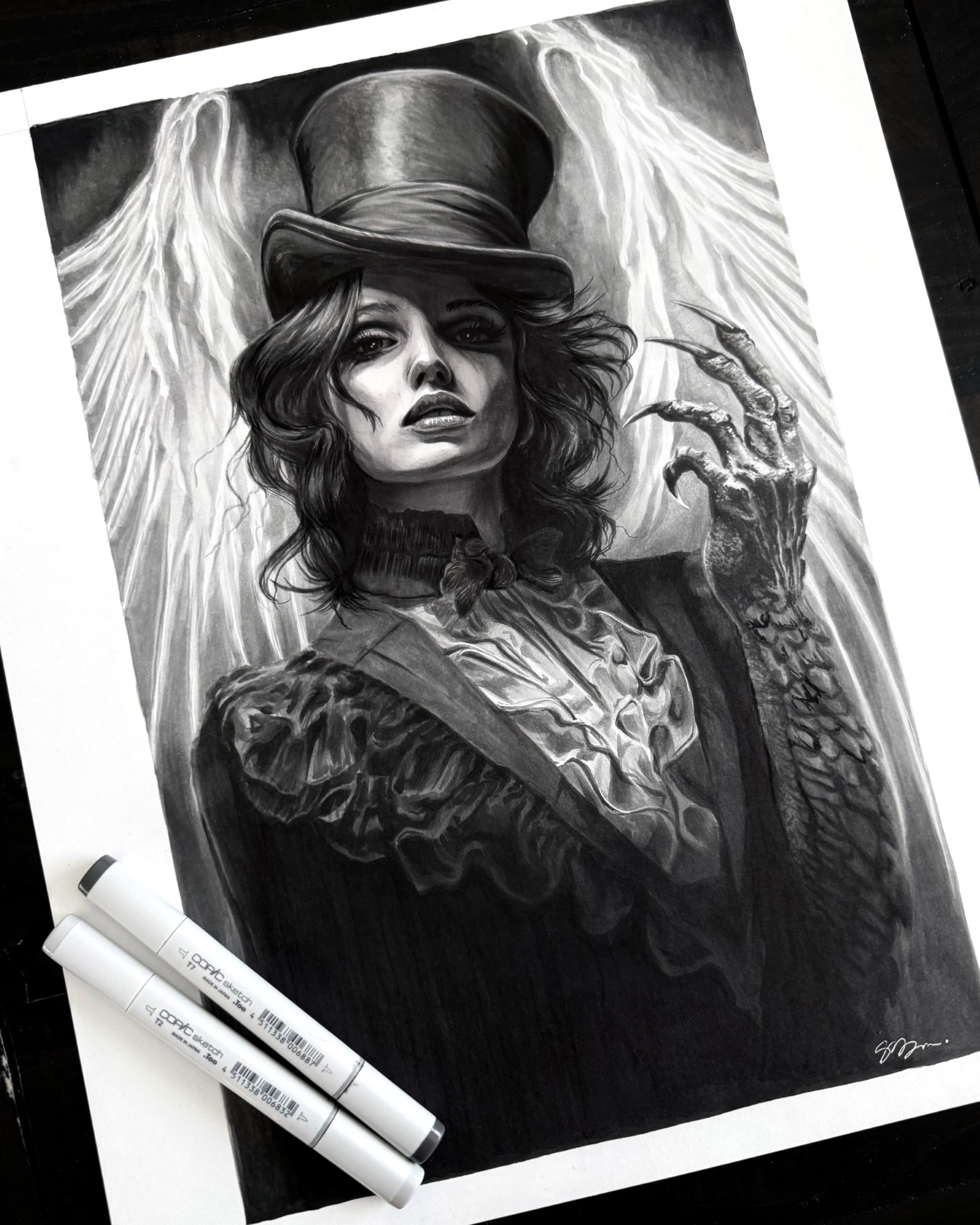 Original artwork for London Horror Comic Cover #13. Artwork done in copic markers on 14"x17" heavyweight paper. This cover features Jane Silver's sister, Mara.
